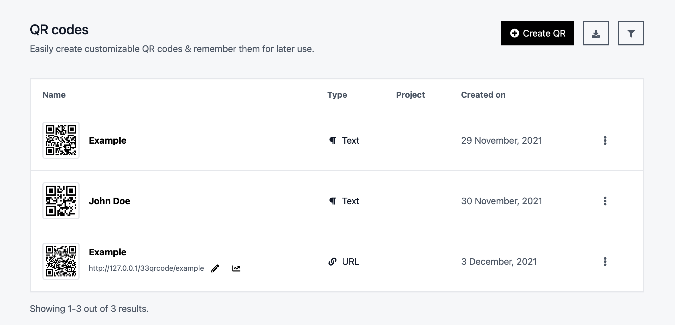 Codurile QR statice sunt fixe, ceea ce înseamnă că toate datele sunt direct încorporate în codul QR. Odată generate și imprimate pentru utilizare în lumea reală, nu pot fi modificate.